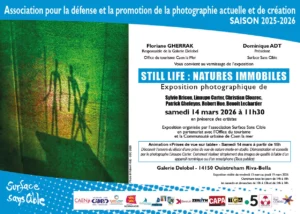 Découvrez l’exposition photographique Still life : Natures immobiles de Surface Sans Cible lors du vernissage le samedi 14 mars 2026 à 11h30 à la galerie Delobel – 14150 Ouistreham Riva-Bella.